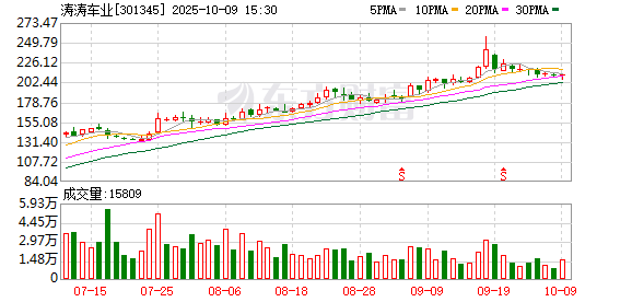 证券时报·数据宝统计,截至发稿,涛涛车业收盘价为211.51元,上涨0.72%,本期筹码集中以来股价累计下跌2.73%。具体到各交易日,4次上涨,4次下跌。